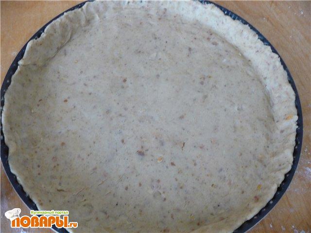 Раскатать 3/4 теста и уложить в форму.