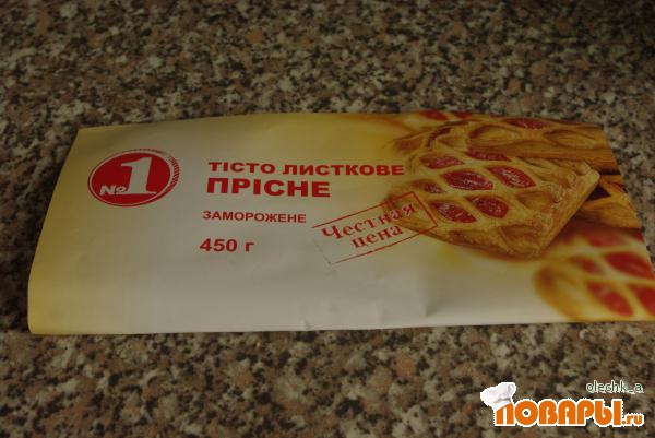 Итак, нам понадобится слоеное тесто, у меня было вот такое: Не знаю насколько оно хорошее, брала его первый раз, но в дальнейшем я буду делать домашнее слоеное тесто.