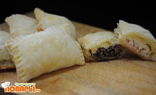 Очень интересный рецепт, легко и вкусно. Можно делать разную начинку и по разному складывать конвертики. Спасибо за рецепт очень понравился.
