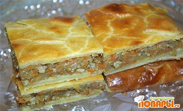 Сочный капустный пирог с куриным фаршем