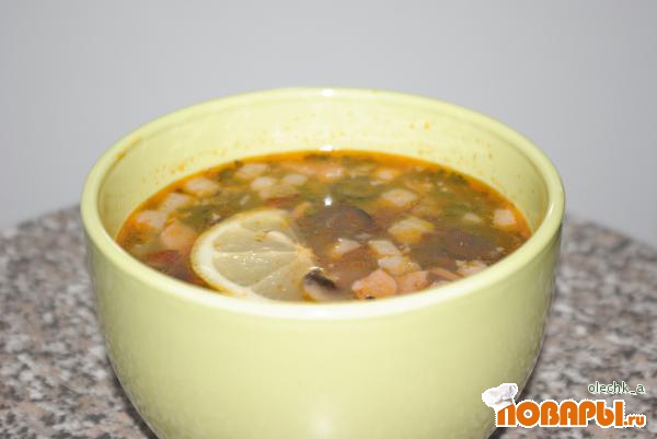 Режем грибы, добавляем их в бульон. (грибы не обязательный ингредиент, это уже называется "королевская солянка".