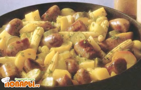 Сосиски с овощами