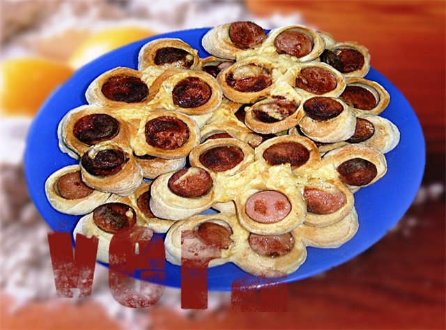 Oroginal\'no. Ya delala sosiski iz bolee prosto, zakativaya v ugolok, y tak vkusno y krasivo. Poprobuyu etot recept. Spasibo!