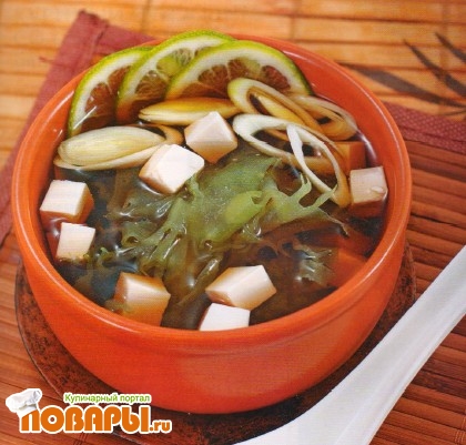 Сварить бульон даси: морскую капусту залить водой и оставить на 1 час. Затем довести до кипения, варить 7-10 минут, после чего морскую капусту удалить, бульон остудить.