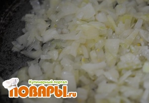 Фарш обжарить до 85% готовности + добавить резанный зеленый лук