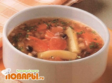 Варите суп до готовности, посолите, поперчите. При подаче посыпьте суп рубленой зеленью.