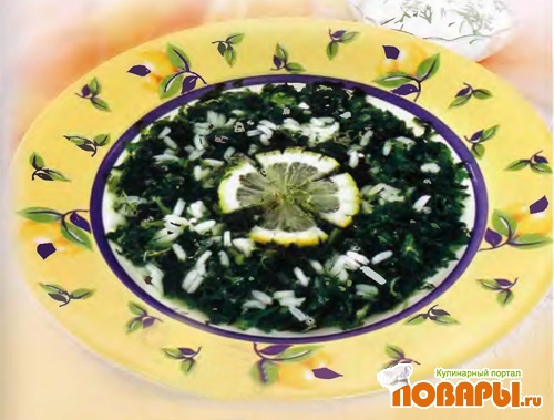 Суп из риса и шпината с лимоном