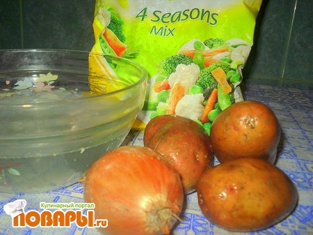 - 300 грамм Овощи, смесь, замороженая (цветная капуста, капуста брокколи, морковь, горошек)