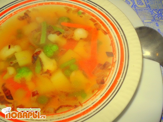 Суп на курином бульоне с замороженными овощами