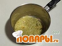 Положите в кастрюлю лук, чеснок, имбирь и карри, и припустите до мягкости. Следите, чтобы чеснок не начал гореть.
