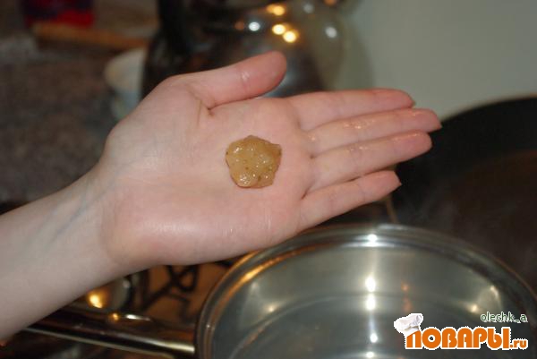 Отдельно варим фрикадельки. Я их делаю из мелко нарубленного куриного филе с приправами (в данном случае - майораном), но приправу лучше выбирать по своему вкусу.