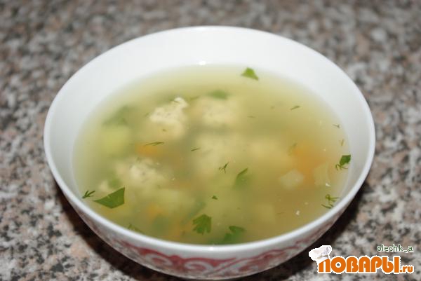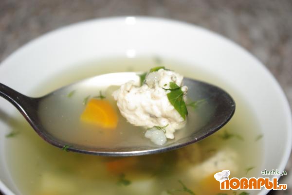 Я фрикадельки всегда отвариваю отдельно, в таком случае они не пропитаются овощами, а будут "мясными" и бульон в супе будет прозрачный.