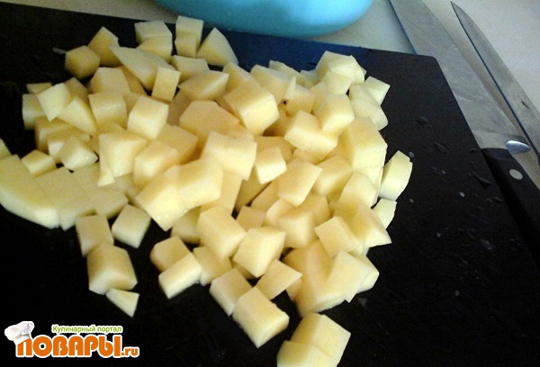 Картофель порезать небольшими кубиками и отварить до полной готовности минут 25.