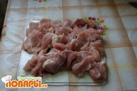 Свинину порежьте тонкими полосками, как для отбивных. Можно отбить кусочки, и тогда блюда получится больше. Или можно не отбивать, и тогда кусочки получатся сытнее.