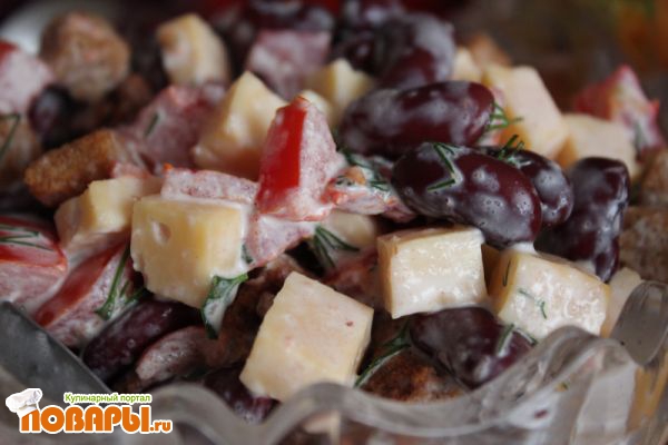 Сырный салат с фасолью