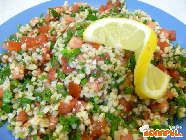 Добавить булгур, посолить, поперчить, посыпать кунжутом. Перемешать и дать настояться.