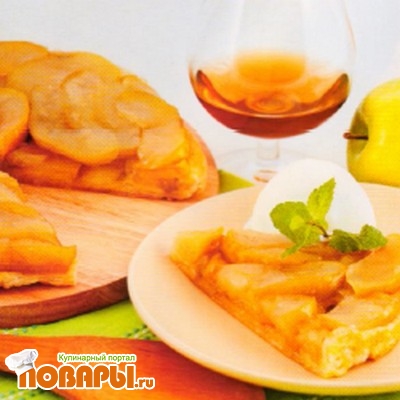 Яблоки вымыть, очистить от кожуры и сердцевины, нарезать тонкими дольками. На сухую сковороду высыпать сахар, осторожно расплавить на среднем огне и уварить до состояния карамели светло-жёлтого цвета. Добавить половину сливочного масла, осторожно перемешать.