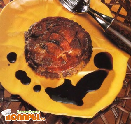 Срежьте ножом корочку с головки камамбера, а затем протрите «сердцевину» через сито. Добавьте сливки, перемешайте и наложите эту массу на лепешки слоем не более 5 мм. Поверх разложите в виде звездочки ломтики яблок в шоколаде и выпекайте в духовке при температуре 210° С 4-5 мин. При желании украсьте каждую тартинку полоской подливки с какао и сразу подавайте.