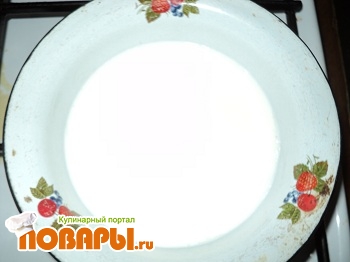 А теперь готовим соус: посуду с молоком ставим на огонь,