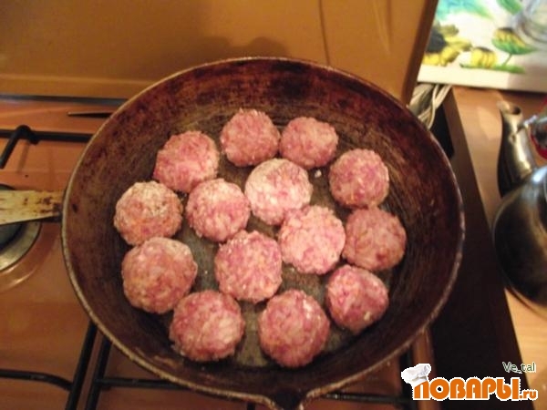 Затем формируем тефтели и выкладываем их на сковородку или в любую удобную для вас посуду, немного обжариваем.