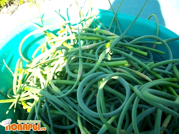 Теплый салат из чесночных стрелок