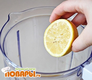 Заливаем апельсиновый сок в блендер и добавляем туда выжатый из лимона сок (внимательно следим за косточками).