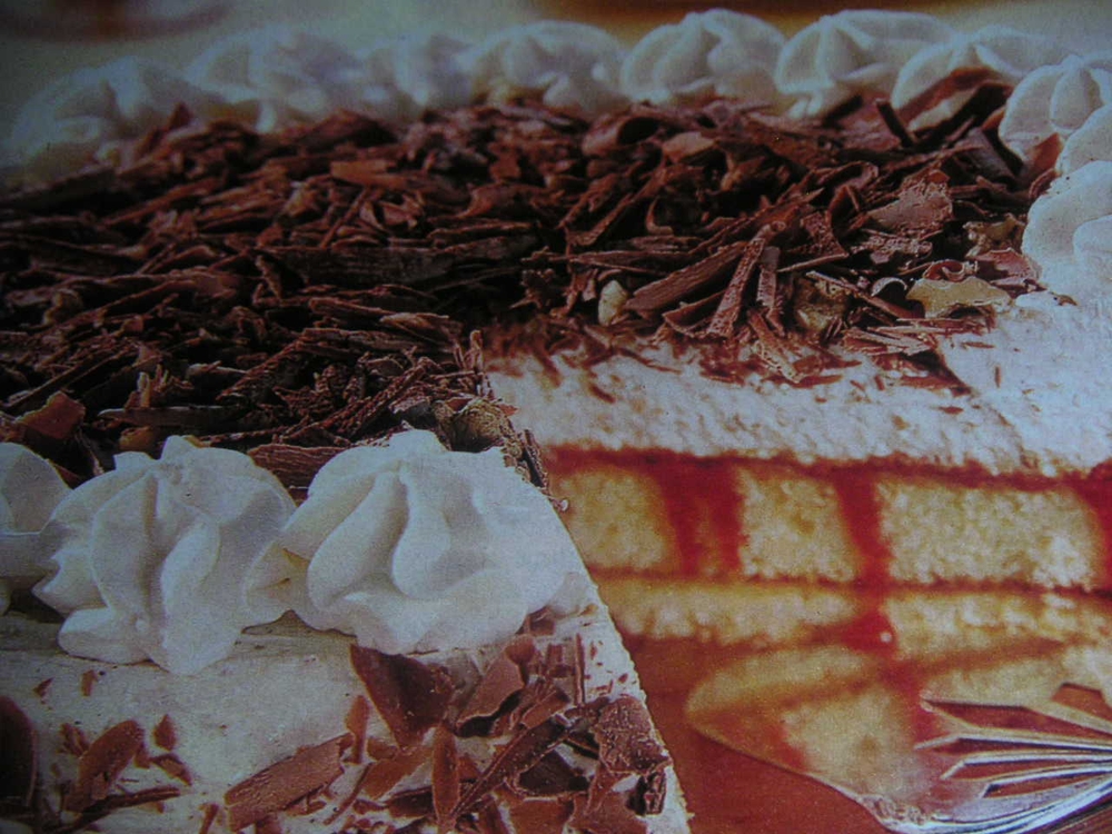 Для крема:взбить сливки с ванильным сахаром,корицей.Подмешать ликёр и молотые орехи.