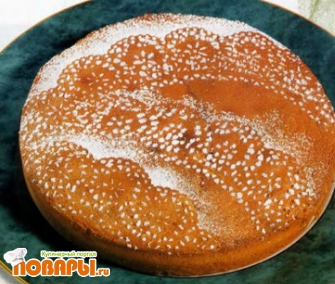Выньте форму из духовки, раскройте ее выложите торт на решетку, чтобы остыл. Перед подачей наложите ажурный трафарет на поверхность торта и посыпьте сахарной пудрой.