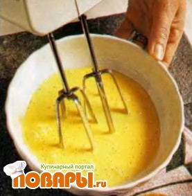 Взбейте белки со щепоткой соли в густую пену при помощи миксера (венчик должен быть тщательно вымыт). Добавьте в желтковую массу, аккуратно размешивая снизу вверх.