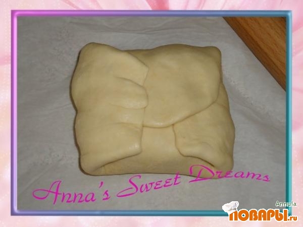 Через 20 минут опять раскатать, свернуть вчетверо, сложить, завернуть, убрать в холодильник. Повторить все эти процедуры еще 1 раз через 20 минут.