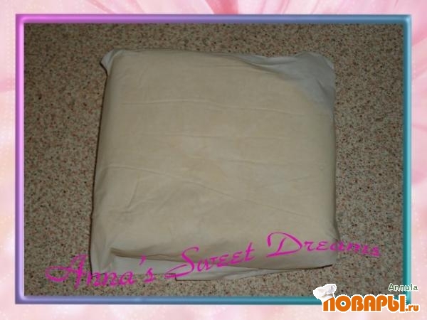 Затем опять раскатать, сложить вчетверо, завернуть в бумагу и положить в холодильник на 20 минут.