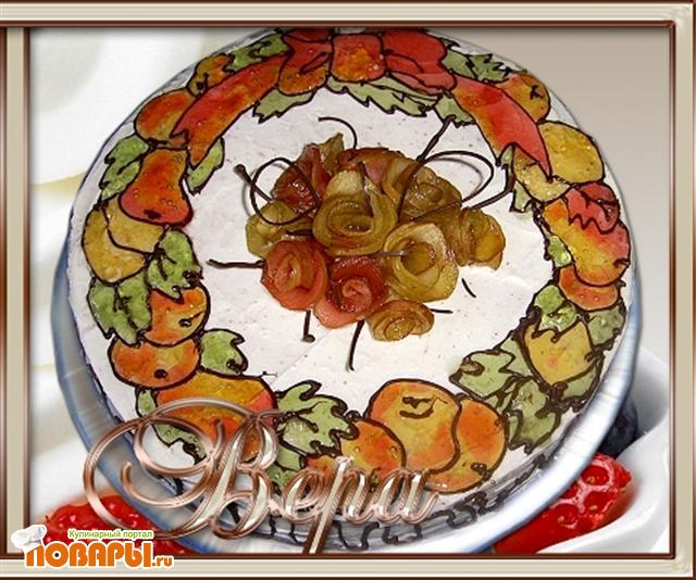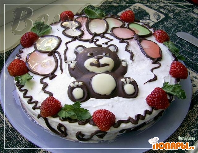 Печь на среднем огне, до румяности. Остудить разрезать на 2 коржа.