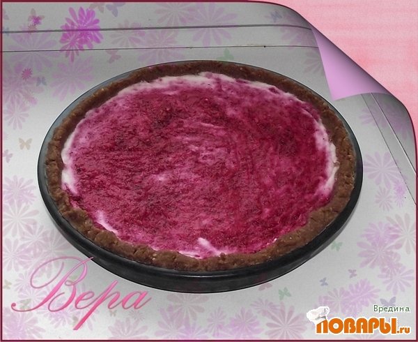 Вылить смесь в печенье, перемешать. Выложить массу в форму, сформировать корж с бортиком.