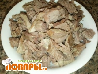 Промываем кусок баранины и ставим варить. После закипания снимаем пену, добавляем к мясу очищенную луковицу, морковь и картофелину.