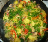 Нарезанный кольцами картофель, помещаем на сковороду.