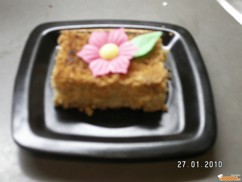 Оставляем на ночь в холодильнике, утром режем на пироженки, украшаем.