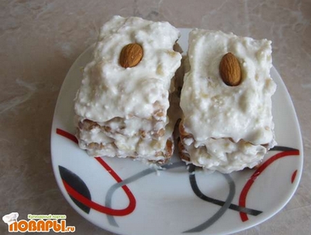 И выкладываем на тарелку. Смазываем печенье кремом и сверху накрываем еще одним размягченным печеньем.