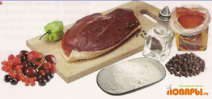 Еще чуть-чуть посолить и поперчить, и, как только поверхность мяса потеряет насыщенный красный цвет, станет матовой, серовато-розовой, снять грудки на подогретое блюдо, снова собрав их так, как они были нарезаны, чтобы получились опять словно целые, и затянуть пленкой.