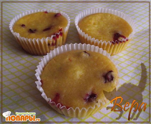 Всыпать бруснику, перемешать. Выложить тесто в формочки и выпекать при 190 градусах 25-30 минут.