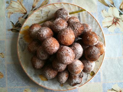 После чего, шумовкой вылавливаем колобки и улаживаем на бумажную салфетку. Салфетка уберет излишки масла и колобки получатся сухими и нежирными.