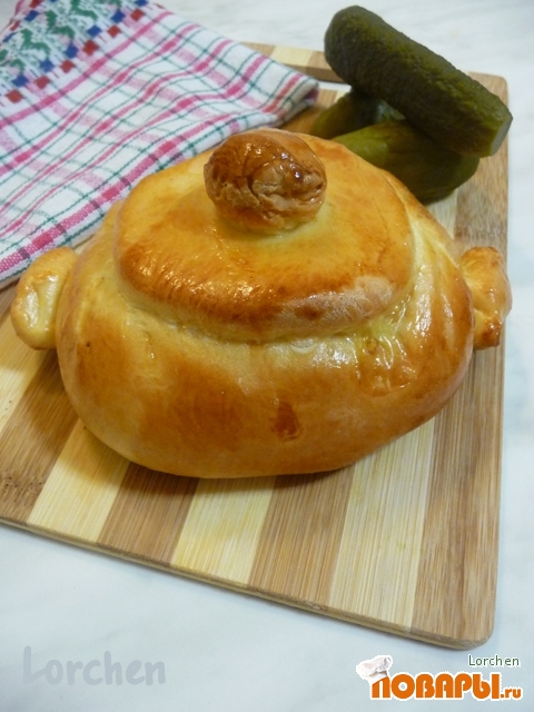 Из оставшегося теста делаем "крышки" и "ручки". "Крышкой" накрываем "горшочки".