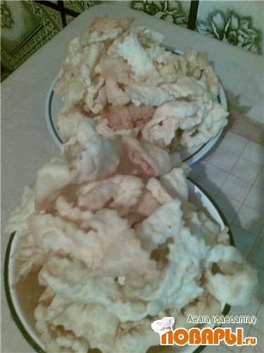 Раскатать ооооочень тонкий пласт теста,нарезать на полоски и жарить во фритюре до золотистого цвета.