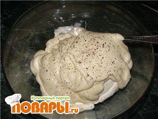 Утром из оставшегося майонеза, творожного сыра , желатина готовим сырный крем по той же технологии что и для прослойки. Снимаем с торта боковинки формы, смазываем бока и верх кремом.. Украшаем рубленной зеленью и розочками их форели. Приятного аппетита!!!