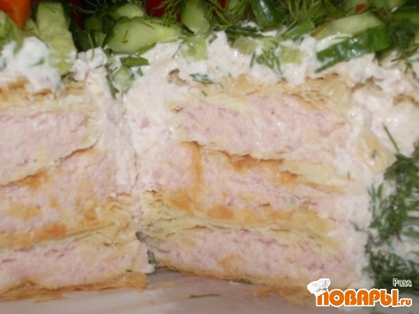 Закусочный торт с муссом из ветчины "Еловая лапка"