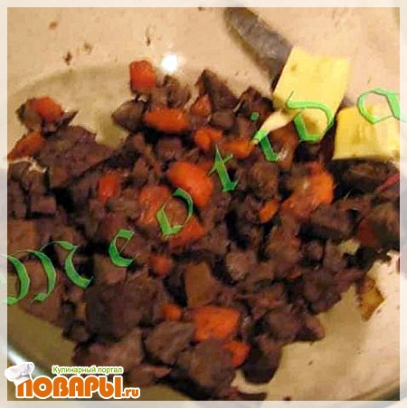 приготовим начиночку из печенки (Вы можете приготовить печеночный паштет по Вашему любимому рецепту, я предлагаю Вам вот такой вариант):