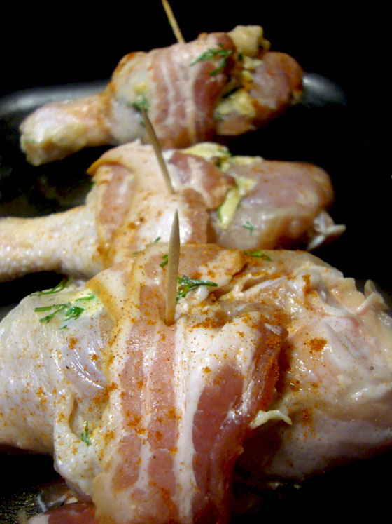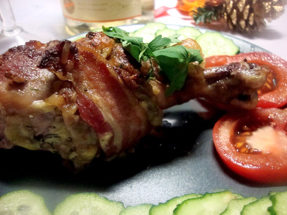 Запеченные куриные голени в беконе