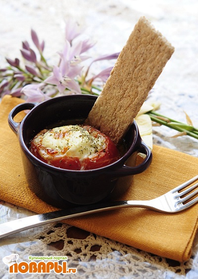 Запеченный помидор с яйцом