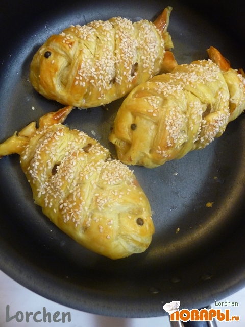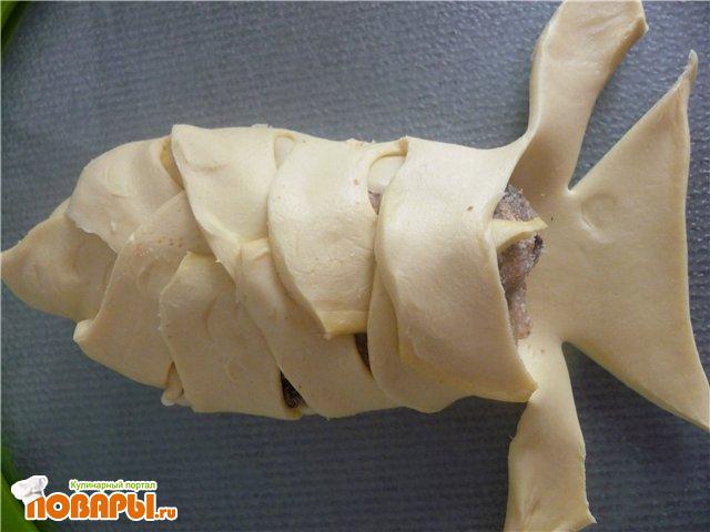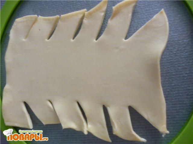 Тесто разморозить, чуть-чуть раскатать, разрезать вот так: