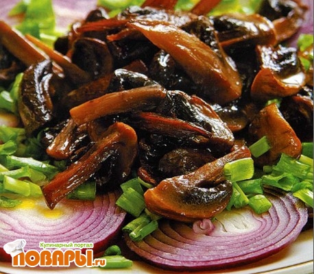 Выложить жареные грибы на блюдо и сразу же подать на стол.