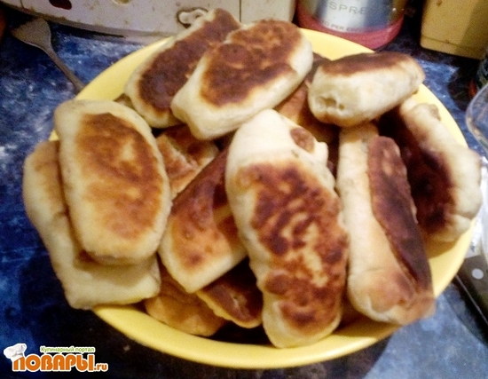 Каждый пирожок обжарить на сковородке (огонь - средний) с обеих сторон. Пропечь по бокам.